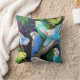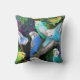 Original fine art design of colourful budgerigars or budgies by artist/designer Carolyn McFann of Two Purring Cats Studio printed on a quality American Mojo pillow for parrot lovers.
