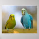 Two budgerigars (Melopsittacus undulatus) perched and seen from front