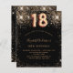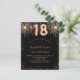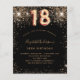A modern, stylish and glamorous invitation for a girl's 18th birthday party. A black background decorated with faux glitter. The name is written with a modern golden colored hand lettered style script. Personalize and add your party details. Number 18 is written with a balloon style font, script.