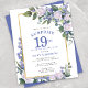 Honour a special woman with this elegant and feminine Budget 19th Birthday Surprise Party invitation. Surprise and 19th are written in large blue text. Birthday Celebration follows. The honoured guest's name is also in blue capital letters. The birthday celebration details are surrounded by a chic gold frame. The blue flowers and white roses are nestled in deep green leaves.