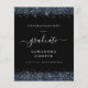A value for money BUDGET alternative on a smaller size 4.5 x 5.6” semi-gloss 110lbs weight, which is of similar thickness to a postcard (however is not suitable to use as a postcard.). PLEASE NOTE there is ONE per sheet. Budget 2024 Graduation Navy Blue Glitter Black Announcement. Elegant faux glitter borders are at the top and bottom on the both sides. Graduate is in a stylish script with swashes. Easily personalise the text to your own requirements includingo on the reverse.