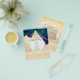 The glitter and foil elements are simulated in the artwork by the Creator. These elements will not be used in the making of this product.