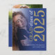 A value for money BUDGET alternative on a smaller size 4.5 x 5.6” semi-gloss 110lbs weight, which is of similar thickness to a postcard (however is not suitable to use as a postcard.). PLEASE NOTE there is ONE per sheet. Budget 2 photo Blue Gold 2025 Graduation Announcement. A modern text and photo design to announce the news of your high school senior class graduate, with stylish large typography rotated and to the right hand side at the top in black and gold. Easily personalise the rest of the text including your message on the back. Replace the photos in the templates on each side with your own.