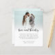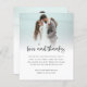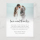 Budget 2 Photo Bold Script Wedding Love Thanks. A budget friendly SMALLER 4.5” x 5.6” alternative. Available in a SEMI GLOSS 110 lb CARD STOCK or a SATIN FINISH 80 lb THINNER PAPER STOCK. Love and thanks is in a bold set handwritten style. Easily personalise the rest of the text to your own details and replace the sample photos on the front and back with your own. Add your QR code to your wedding photo online gallery on the back by replacing the QR code on the sample. You can create QR codes for free online, search 'QR code generator'.
