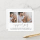 A value for money BUDGET alternative on a smaller size 4.5 x 5.6” semi-gloss 110lbs weight, which is of similar thickness to a postcard (however is not suitable to use as a postcard.). PLEASE NOTE there is ONE invite per sheet. Budget 2 Photo Script Engagement Party Invitation. Modern elegance. Simply replace the two sample photos with your own favourites. Engagement Party is in an elegant handwriting style set script, and easily personalise the rest of the text.