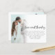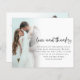 Budget 2 Photo Script Wedding Love Thanks. A budget friendly SMALLER 4.5” x 5.6” alternative. Available in a SEMI GLOSS 110 lb CARD STOCK or a SATIN FINISH 80 lb THINNER PAPER STOCK. Love and thanks is in a set handwritten style. Easily personalise the rest of the text to your own details and replace the sample photos on the front and back with your own. Add your QR code to your wedding photo online gallery on the back by replacing the QR code on the sample. You can create QR codes for free online, search 'QR code generator'.
