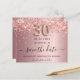A girly and trendy Save the Date card for a 30th birthday party. Blush pink gradient background decorated with rose faux glitter dust. Personalise and add a date and name/text. The text: Save the Date is written with a large trendy hand lettered style script with swashes. Number 30 with a balloon style font.