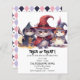 Cute Trick or Treat Invitation for the entire family featuring the cutest 3 little cat witches with their little hats and capes illustration. You can personalise this Invitation with your details.