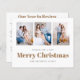 BUDGET 3 Photos Family Newsletter Merry Christmas Card. A smaller 4.5 x 5.6" budget price option on a 110gsm card which is similar in thickness to a postcard. PLEASE NOTE There is ONE card per sheet. Simply replace the sample images with your own favourites and personalise the text as required.
