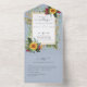 BUDGET 3in1 Burgundy Sunflowers Wedding RSVP All In One Invitation