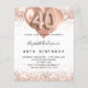 For an elegant 40th birthday. A stylish white background. Decorated with rose gold, pink faux glitter, sparkles and balloons. Personalise and add a name, and party details. The name is written with a hand lettered style script, number 40 with balloon style fonts.