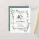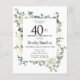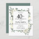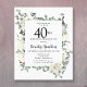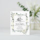 Elegant 40th birthday party invitation features a botanical frame of white flowers and deep green leaves. The birthday person's name is written in a traditional script text. All of the text can be easily edited to create just the right celebratory tone.