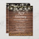 Featuring string lights and delicate golden love hearts confetti on a rustic wood background. Personalise with your special fifty years golden anniversary information in chic lettering. Designed by Thisisnotme©