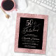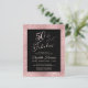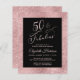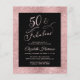 Budget-friendly elegant and chic black and sparkly rose gold fiftieth birthday party invitation with "50 & Fabulous" in a stylish rose gold script and simple rose gold typography.