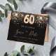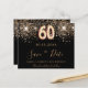 A girly and trendy Save the Date for a 60th birthday party. A black background decorated with faux gold glitter. Templates for a date and name and text. Golden coloured letters. The text: Save the Date is written with a large trendy hand lettered style script.