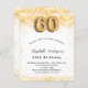 For an elegant 60th birthday party. A chic white background. Decorated with faux gold glitter, sparkles. Personalise and add a name, age and party details. The name is written with a hand lettered style script. Number 60 with balloon style font.