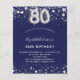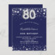 Budget 80th birthday navy blue silver invitation