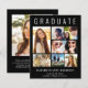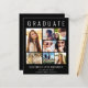 Elegant budget-friendly black graduation announcement to celebrate the graduate featuring "GRADUATE" across the top in large white typography, a seven photo collage and his or her name, class year and school in modern white typography. On the back add an additional photo and a custom message.