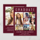 Elegant budget-friendly dark burgundy red graduation announcement with "GRADUATE" across the top in large white typography, a seven photo collage and their name, class year and school in modern white typography. On the back add an additional photo and a custom message.
