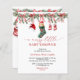 Celebrate a joyous winter baby shower with the A Merry Little Christmas Baby Shower Invitation. This festive invitation features charming Christmas details like red bows, garlands, a teddy bear in a stocking, and adorable holiday accents such as Santa hats and baby booties. Perfect for a December baby shower, the design radiates the warmth and magic of the holiday season. Customise the card with your event details to add a personal touch to this delightful and memorable invitation.
