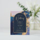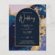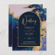Budget Agate Blue Gold Wedding Invite QR Code RSVP