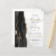 The left-hand edge of this elegant modern wedding invitation features a black watercolor agate border trimmed with faux gold glitter. The customisable text combines gold-coloured handwriting script with black copperplate and italic fonts on a white and silver grey marble background. Add additional details on the back, along with a QR code to help your guests visit your wedding website.