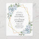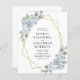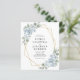 Budget All in One QR Code Dusty Blue Floral Gold Geometric Frame Wedding Invitation... Our affordable "front and back" blue floral wedding invitation features bouquets of dusty blue flowers on a gold geometric frame bordering your personalised invitation text. The back of the invitation contains all of the details you would typically see on separate cards within the wedding packet, including the QR code for your wedding website -- which you can create right on Zazzle's Personalisation template. This modern style all in one wedding invitation was designed to be both elegant and budget conscious... as well as time-saving. All example text on both sides can be easily revised with your own information on the personalisation template.