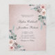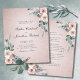Budget All in One Dusty Pink Roses Boho Glitter Elegant Script Typography Wedding Invitation... Our affordable "All in One" boho roses wedding invitation features a blush rose gold glitter ombre background overlaid with bouquets of pastel and dusty pink roses and greenery framing your elegant script typography invitation text. The back of the invitation contains all of the details you would typically see on separate cards within the wedding packet. This modern style all-in-one wedding invitation was designed to be both elegant and budget conscious... not to mention time-saving. All example text can be easily revised with your own information on the personalisation template.