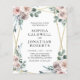 Budget All in One Boho Dusty Pink Floral Roses and Eucalyptus Watercolor Greenery Wedding Invitation... Our affordable "All in One" wedding invitation features dusty pink roses and eucalyptus greenery arrangements on a gold metallic foil geometric frame bordering your personalised invitation text. The back of the invitation contains all of the details you would typically see on separate cards within the wedding packet. This modern style all-in-one wedding invitation was designed to be both elegant and budget conscious... not to mention time-saving. All example text can be easily revised with your own information on the personalisation template.