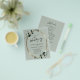 Budget Eucalyptus Gold All in One with Details on Back QR Code RSVP Sage Wedding Invitation Flyer... Our affordable "all in one" botanical front and back wedding invitation features a faux gold oval frame embellished with emerald-hued eucalyptus leaves on a light sage background. Chic modern calligraphy displays the text for "the Wedding of", "and" as well as "reception to follow" accompanied by elegant serif typography for the text you can personalise. The sage back of the invitation contains all of the details you would typically see on separate cards in the wedding packet. This modern style wedding invitation was designed to be both elegant and budget conscious... not to mention time-saving for busy brides-to-be. On the back there is also a QR code graphic template you can replace with your own code just by typing in your wedding website URL. All example text (aside from the calligraphy graphics) can be easily revised with your own information on the personalisation template. ***PLEASE NOTE*** The paper for our most affordable budget invitation is 80 lb. weight and the thickness of paper most often used for business and event flyers. Your office supply resource or online store will be able to supply the A6 envelopes for these invitations. Our Eucalyptus Gold Sage Modern Calligraphy Collection includes a slightly heavier weight QR code budget invitation as well as traditional wedding flat cards with your QR code on them.