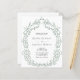 Budget All in One Leafy Green Foliage Wreath Wedding Invitation... Our affordable "All in One" botanical wedding invitation features a wreath of delicate green leaves bordering your personalised invitation text. The back of the invitation contains all of the details you would typically see on separate cards within the wedding packet. This modern style all-in-one wedding invitation was designed to be both elegant and budget conscious... not to mention time-saving. All example text can be easily revised with your own information on the personalisation template.