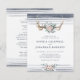 Budget All in One Boho Dusty Pink Roses and Deer Antlers Wedding Invitation... Our unique "All in One" boho roses wedding invitation features a rustic blue-gray watercolor stripes bordered background overlaid with flower-studded deer antlers and a bouquet of dusty pink roses and greenery framing your invitation text. The back of the invitation contains all of the details you would typically see on separate cards within the wedding packet. This modern style all-in-one wedding invitation was designed to be both elegant and budget conscious... not to mention time-saving. All example text can be easily revised with your own information on the personalization template.