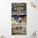 A 3 in 1 rustic country chic wedding trifold invitation featuring a rustic wood barrel background, twinkle string lights, botanical greenery watercolor foliage, your monogram, wedding details, wedding invite, and an rsvp postcard for your guests to cut off and send back.