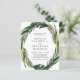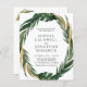 Budget All in One Tropical Green and Gold Palm Leaves Wedding Invitation... Our affordable "All in One" tropical palm leaves wedding invitation features an elegant oval frame of green and gold palm leaves bordering your invitation text. The back of the invitation contains all of the details you would typically see on separate cards within the wedding packet. This modern style all-in-one wedding invitation was designed to be both elegant and budget conscious... not to mention time-saving. All example text can be easily revised with your own information on the personalisation template.