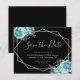 Budget Aqua Floral Black Wedding Save the Date