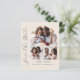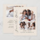 This simple, minimalist Save the Date card features a photo collage arch, with a horizontal photo at the top and two square photos below. The words "Save the Date" run vertically up the left margin in elegant black handwriting script. The couple's names, wedding date and city appear below the photo collage in sans serif font on a beige background. Add a fourth, horizontal photo and amore detailed message with additional information on the back.