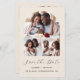 This simple, minimalist Save the Date card features a photo collage arch, with a horizontal photo at the top and two square photos below. The words "Save the Date" appear in elegant black handwriting script, followed by the couple's names, wedding date and city in sans serif font on a beige background. Add a fourth, horizontal photo to the back, along with a more detailed message with additional information.