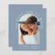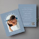Modern dusty blue budget-friendly all-in-one wedding invitation featuring your photo in an arched frame surrounded by "To Have And To Hold" in elegant white text. Under your photo, add your first names, wedding date and location. On the reverse side, personalise your invitation in simple white typography and input your wedding website address to create a scannable QR code for your guests to scan to RSVP online and obtain additional wedding details such as accommodations.