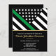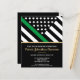 This design features a military flag with black and white stripes, and a thin green line stripe as well. The gold text sits above all of the party details for the graduating sergeant, captain, soldier, lieutenant or general's graduation party details.