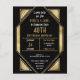 Art Deco Ruby 40th Wedding Anniversary Invitation. A budget price SMALLER 4.5” x 5.6” alternative. Available in a SEMI GLOSS 110 lb CARD STOCK which is the default option (recommended for invitations, similar to the thickness of a postcard), OR a SATIN FINISH 80 lb THINNER PAPER STOCK (ideal for enclosures). Envelopes are an optional extra and are slightly larger than the card size. Back in time to the glorious twenties era glamour with this gold and black Art Deco style for your Wedding Anniversary party. Easily personalise the typography with your details.