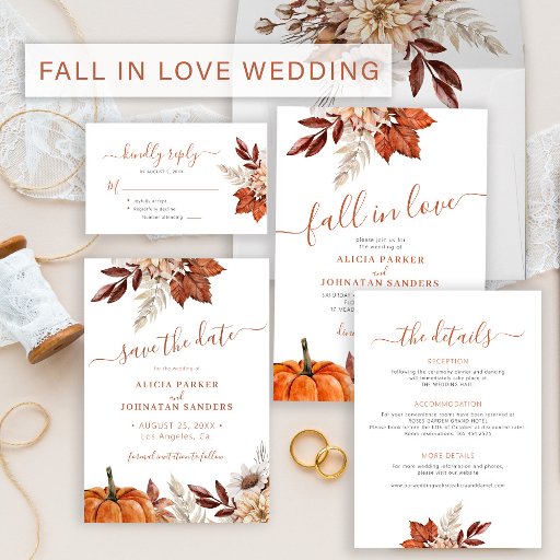 Simple modern rustic watercolor flowers, pumpkin, foliage, pampas grass and dried leaves making a chic autumn fall elegant wedding save the date card with a trendy handwriting calligraphy script and earthy terracotta beige taupe colour palette. ++++++++++++++++ Easy to personalise with details, your photo and QR code (automatically generated with your URL link) to your wedding website or photo gallery.