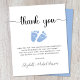 Thank your baby boy shower guests with this cute budget-friendly thank you card featuring "thank you" in a stylish script with swashes and a blue watercolor of baby feet. Underneath you can easily personalise your thank you message or leave blank for a handwritten note.