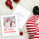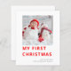 A budget price SMALLER 4.5” x 5.6” flat 110 lb card for your festive greetings on a shiny SEMI GLOSS 110 lb card stock (similar to the thickness of a postcard) PLEASE NOTE: The envelope supplied with this card is slightly larger than the card itself. Budget Baby First Christmas Photo Holidya Card. My First Christmas in a modern bold typography in red. Simply replace the sample image with your own favourite of square format and personalise with your greeting and name at the bottom and message on the back.