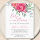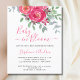 This pretty couples baby shower invitation features watercolor roses and flowers in shades of pink and purple with eucalyptus and other foliage,