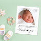 A budget-friendly baby girl or baby boy thank you birth announcement. The front features your baby's photo, name, arrival date and birth stats, and "thank you" written in a contemporary script with a heart joining the two words. On the reverse side add an additional photo, and personalize a thank you message and parent and sibling names under a coordinating cute arrow with a heart. This budget semi-gloss paper is similar in weight to photo paper. A larger 5x7 traditional card stock version is also available (message us for the link).