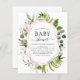 Budget Eucalyptus Greenery Botanical Watercolor and Rose Gold - Blush Pink Geometric Spring Baby Shower Invitations on white background - includes beautiful and elegant script typography with modern botanical leaves and greenery for the special Mother to Be celebration.