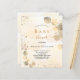 For an elegant Baby Shower. A golden watercolored background decorated with golden eucalyptus and faux gold glitter dust. Personalise and the name of the mum to be and party details. Black and golden coloured letters.