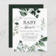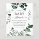 Budget Greenery Botanical Watercolor Spring Baby Shower Invitations on green and white background - includes beautiful and elegant script typography with modern botanical leaves and greenery for the special Mother to Be celebration.