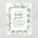 Budget Eucalyptus Greenery Botanical Watercolor and Faux Gold Foil Geometric Spring Baby Shower Sprinkle Invitations on white background - includes beautiful and elegant script typography with modern botanical leaves and greenery for the special Mother to Be celebration.