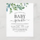 Budget Floral Greenery Botanical Watercolor Spring Baby Sprinkle Shower Invitations on green and white background - includes beautiful and elegant script typography with modern botanical leaves and greenery for the special Mother to Be celebration.